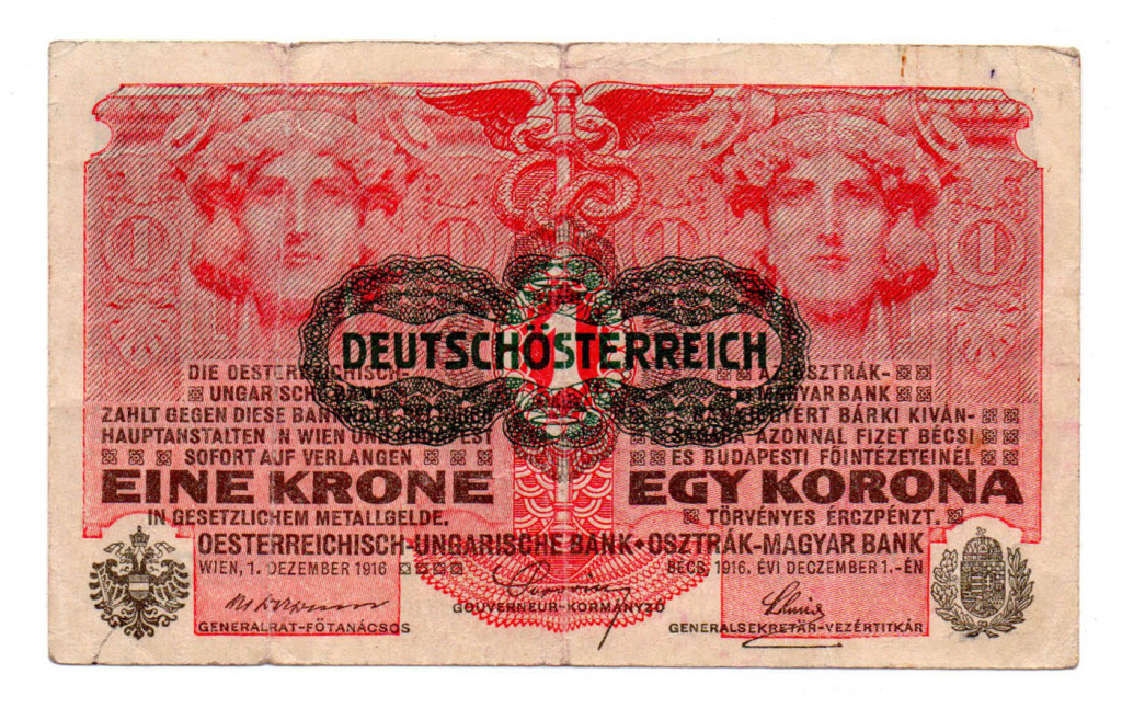 1 Korona Bankjegy 1916 Deutschösterreich bélyegzéssel F