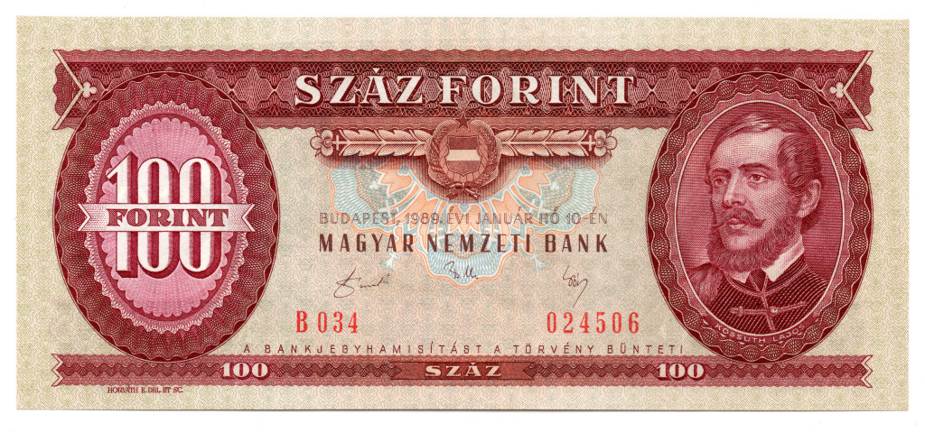 Előlap: Új népköztársasági címer, Értékjelzés balra, Kossuth Lajos portréja jobbra.