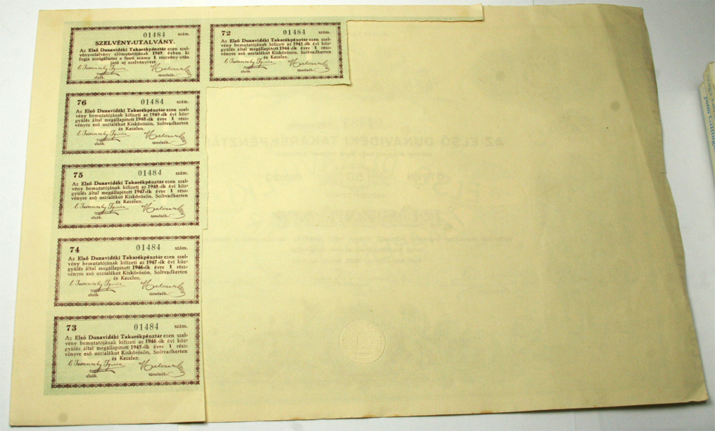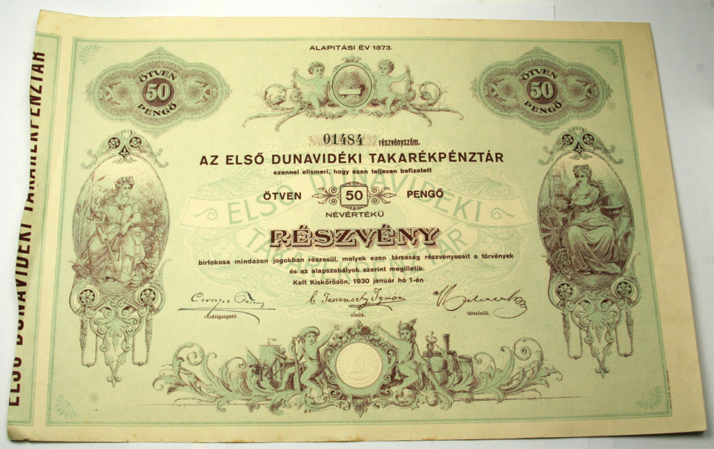 1930 Első Dunavidéki Takarékpénztár 50 Pengő Részvény