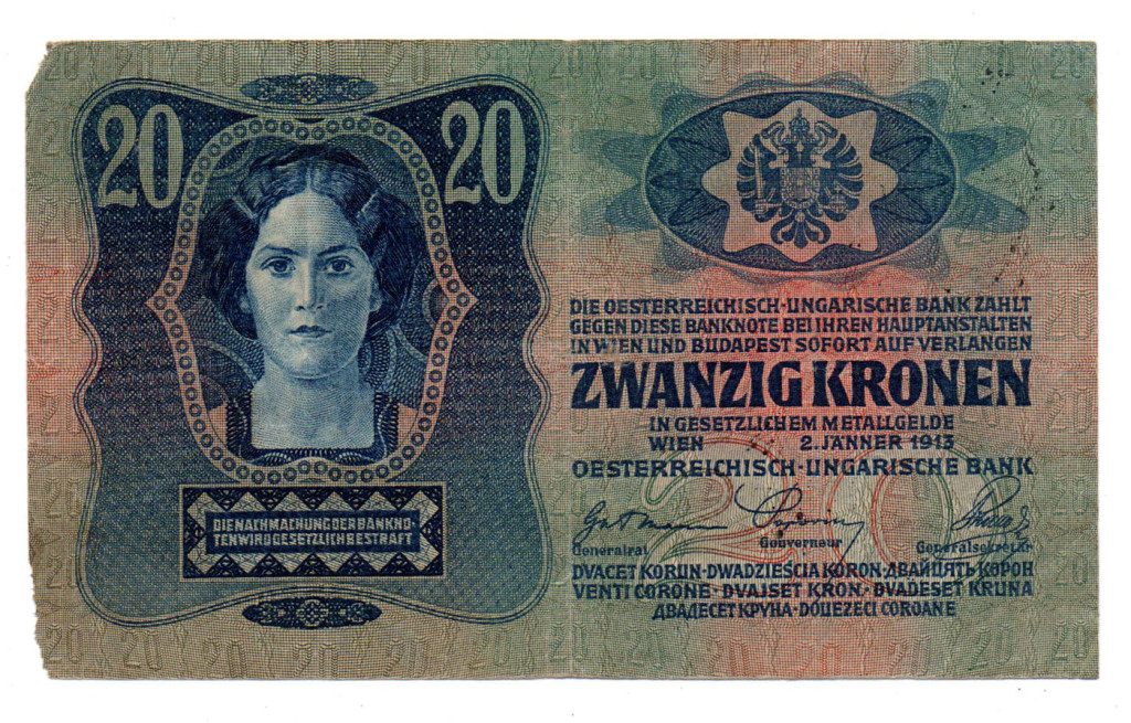 20 Korona Bankjegy 1913 I. kiadás Románia felűlbélyegzéssel VG
