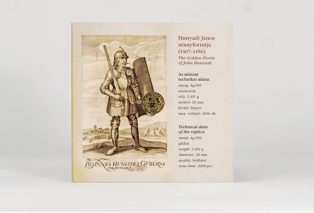 Hunyadi János aranyforintjának aranyozott ezüst utánveretével