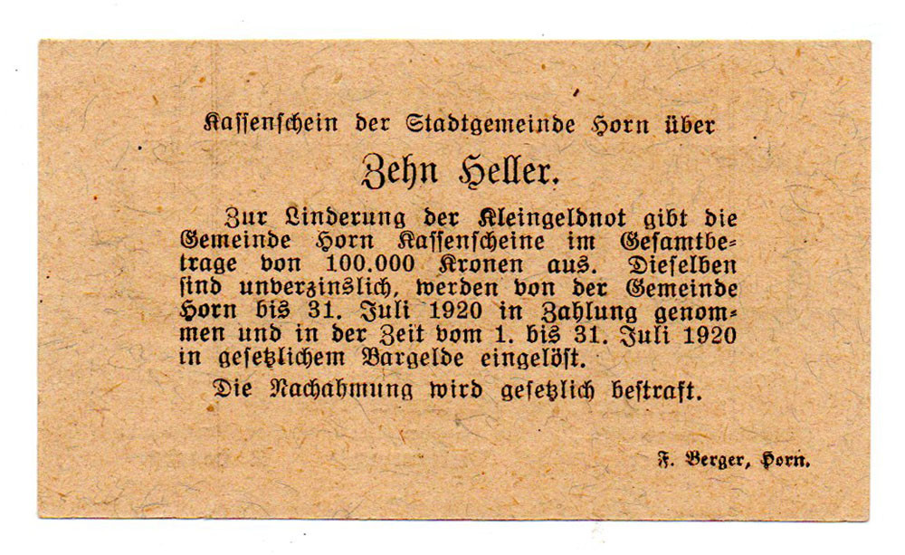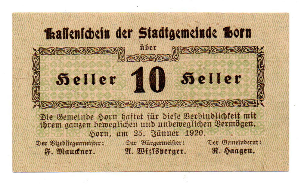 Ausztria Notgeld Horn 10 Heller 1920
