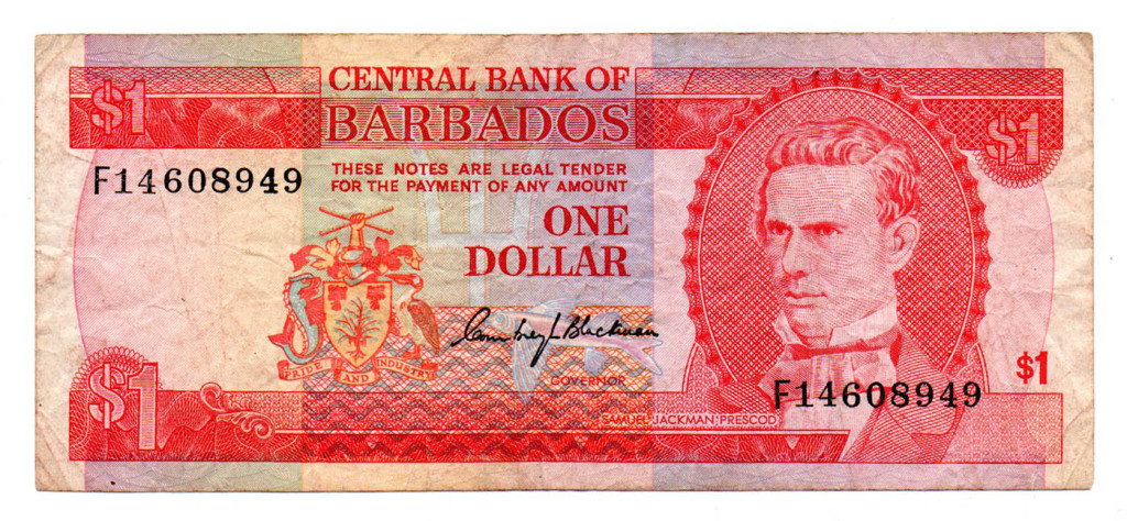 Barbados 1 Dollár Bankjegy 1973 P29a