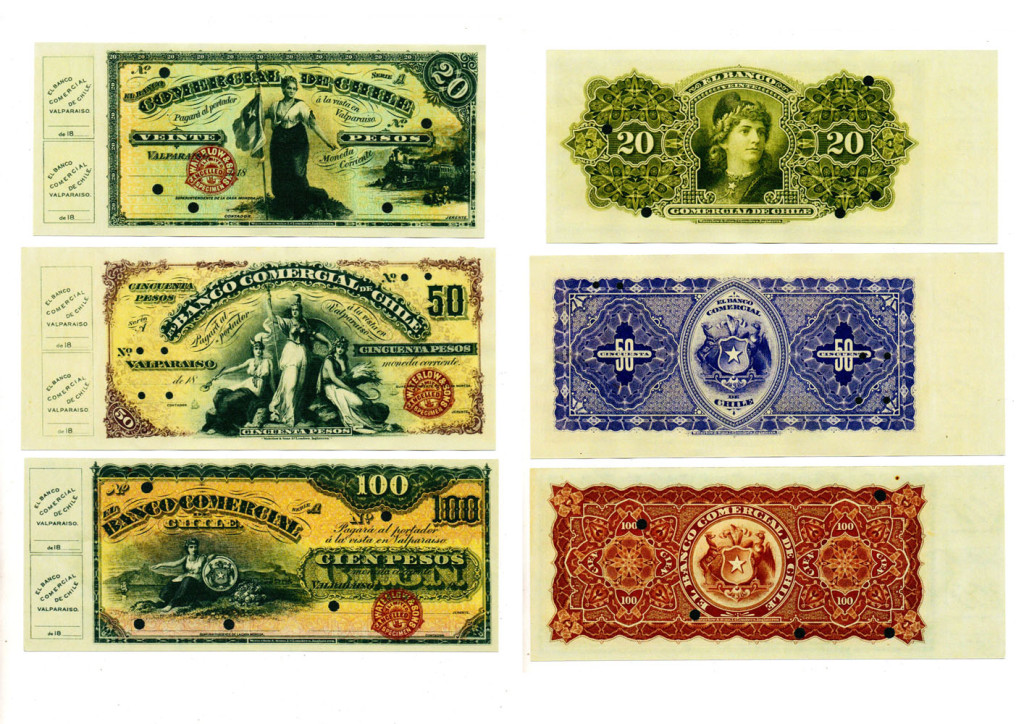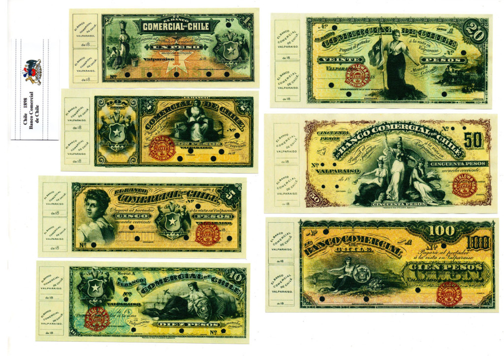 Chile Banco Comercial de Chile Bankjegy sor 1898 összesen 7db MÁSOLAT
