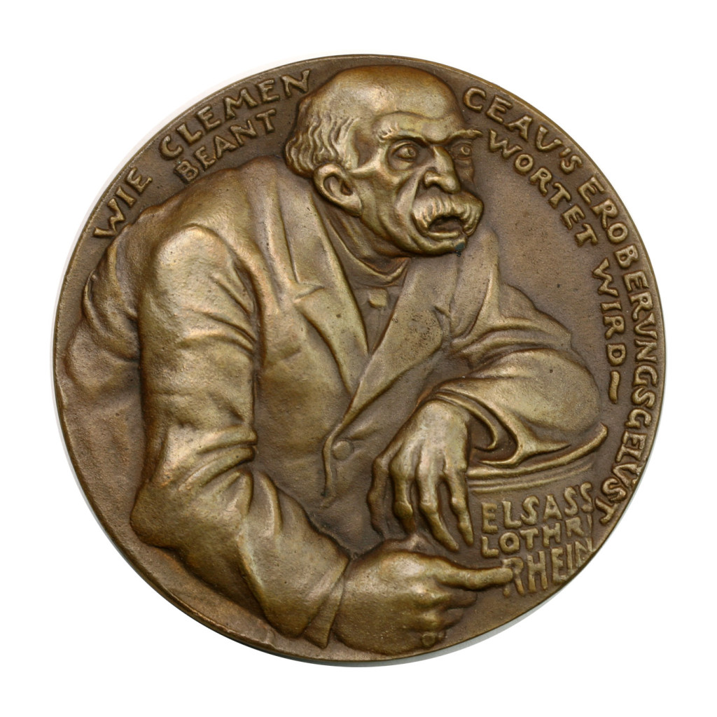 I. VH Karl Goetz emlékérem 1918 a francia államférfi, Clemenceau hódító politikájáról és Párizs nagy hatótávolságú bombázásáról.