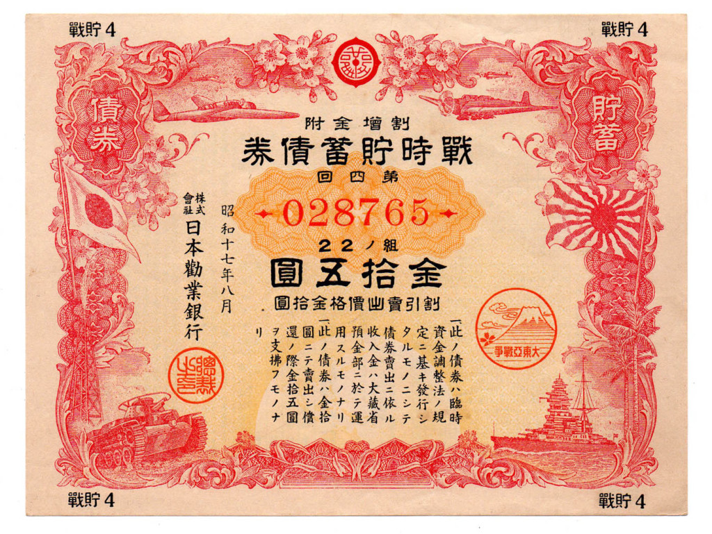 Japán Háborús Hazafias kötvény 4. sorozat 15 Yen értékben 1942