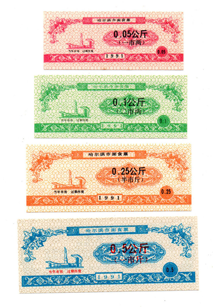 Kína Harbin City tészta / gabona utalvány sor 1991