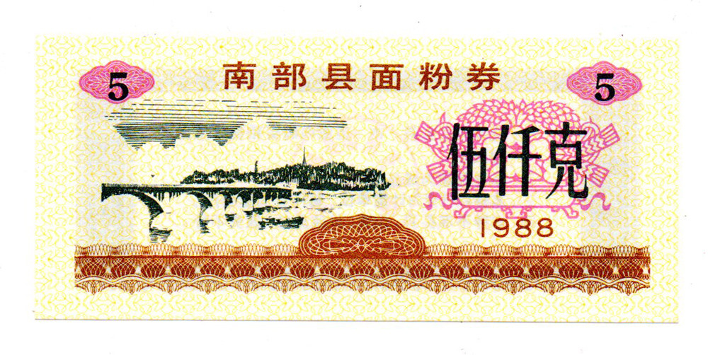 Kína Nanbu City 5 kg liszt Élelmiszerutalvány 1988