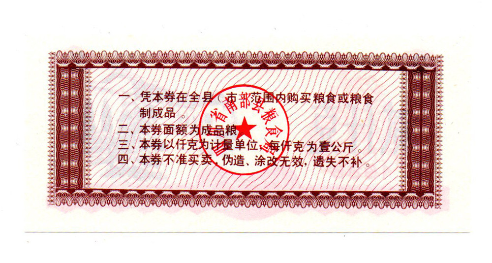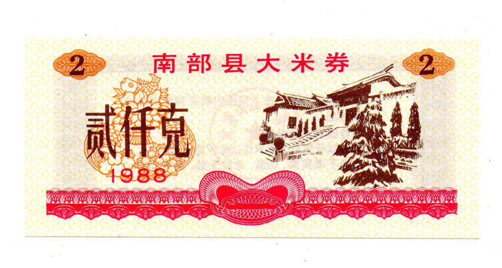 Kína Szecsuan tartomány 2 kg rizs Élelmiszerutalvány 1988