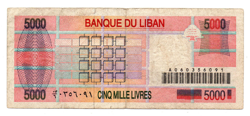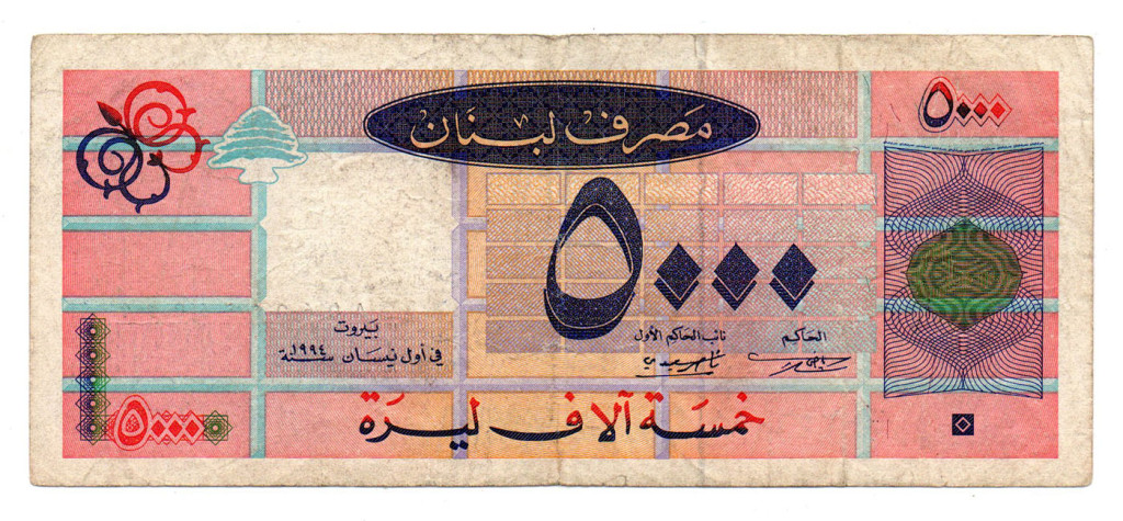 Libanon 5000 Font Bankjegy 1994 P71a