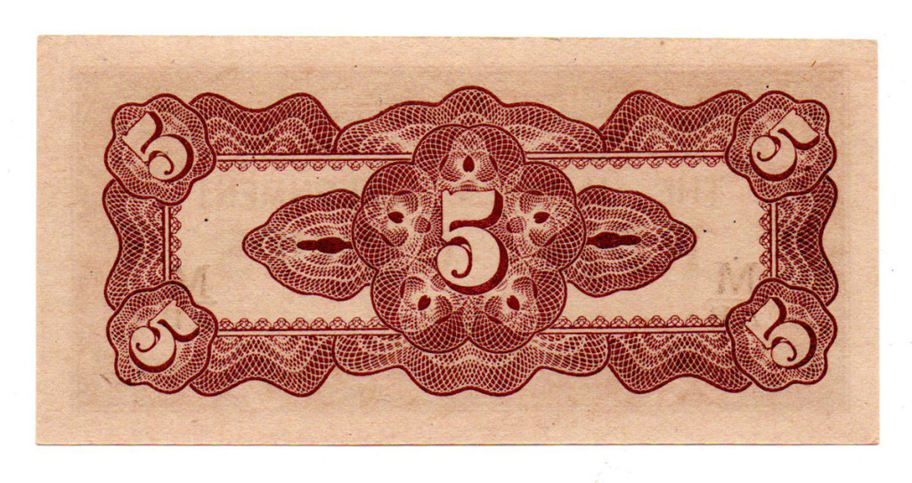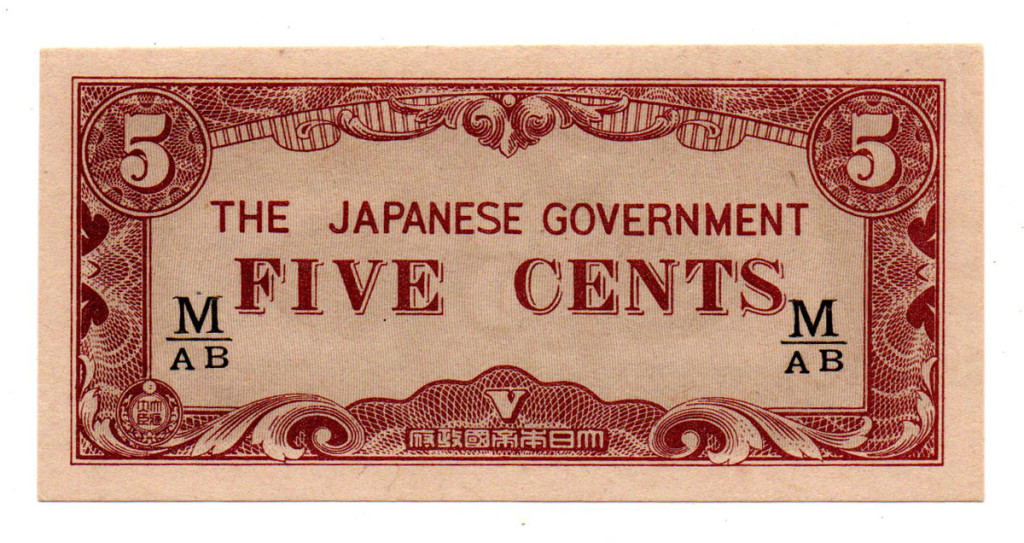 Malájföld Japán megszállása 5 Cent Bankjegy 1942 PM2b fekete sorozat