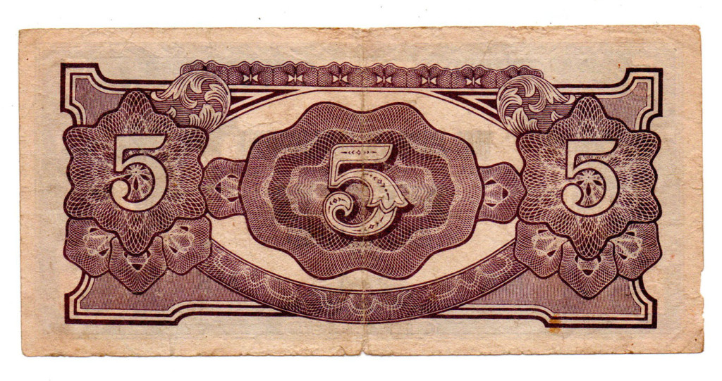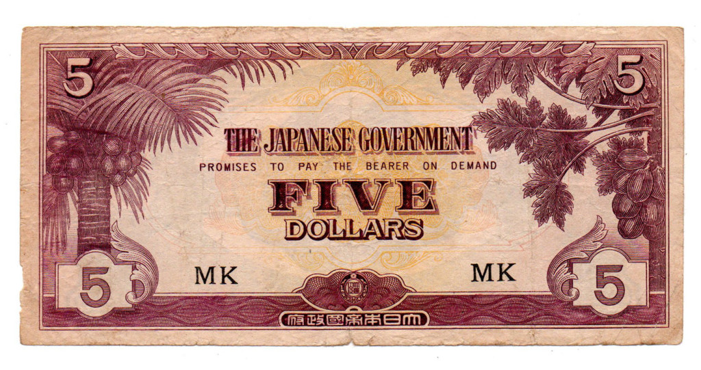 Malájföld Japán megszállása 5 Dollár Bankjegy 1942 PM6c