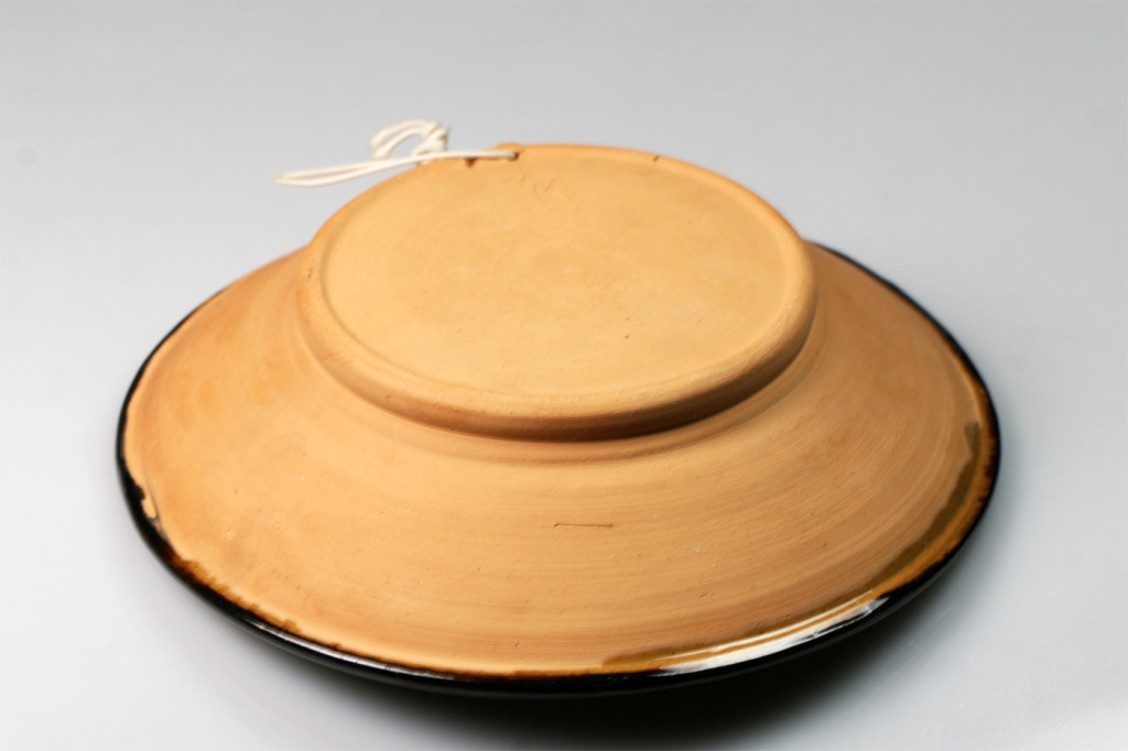 Népművészeti mázas kerámia fali tál jelzett 'BA'