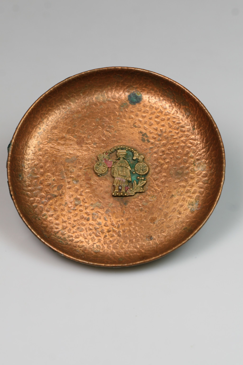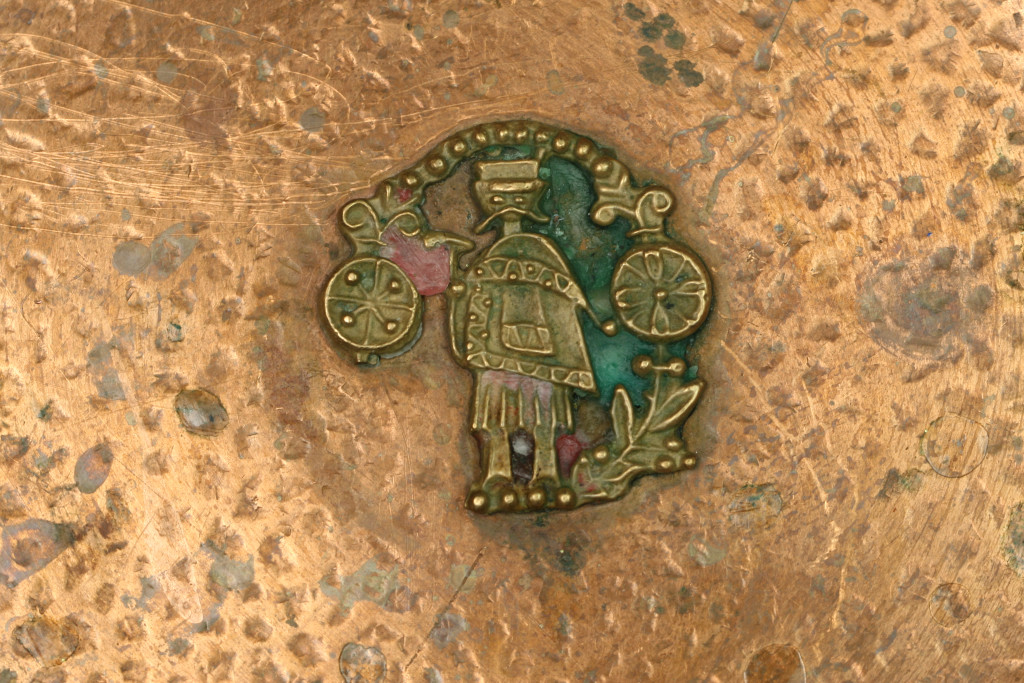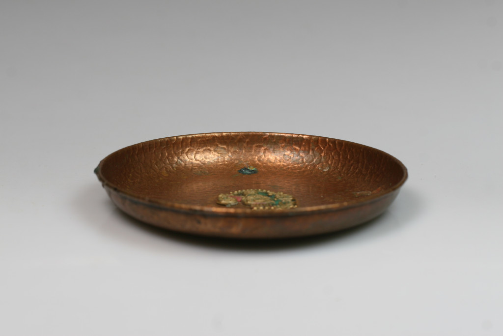 Poncolt díszítésű réz tálka rátét díszítéssel