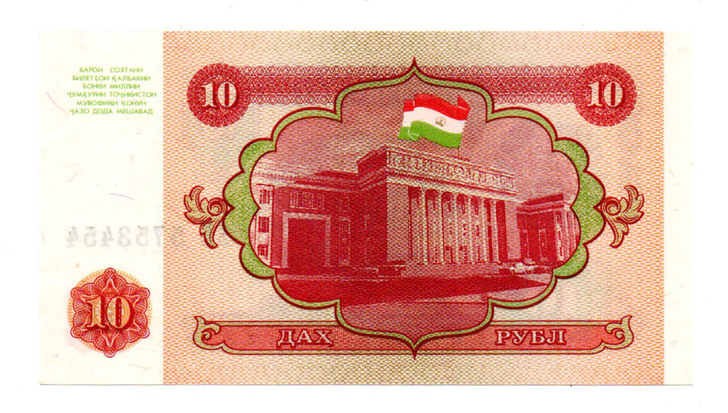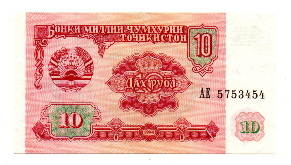 Tádzsikisztán 10 Rubel Bankjegy 1994 P3a UNC