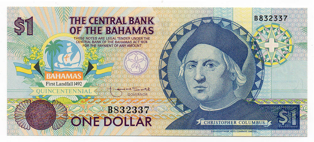 Bahama-szigetek 1 Dollár Bankjegy 1992 P50a Kolumbusz Kristóf