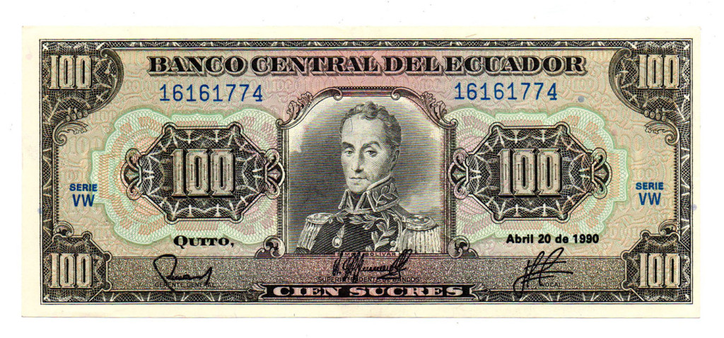 Ecuador 100 Sucres Bankjegy 1990 P123 VW sorozat