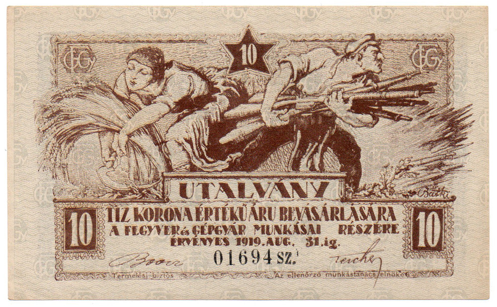 Fegyver és Gépgyár 10 Korona utalvány 1919