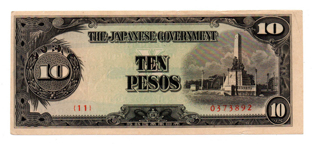 Fülöp-szigetek Japán megszállása 10 Pesó Bankjegy 1943 P111a