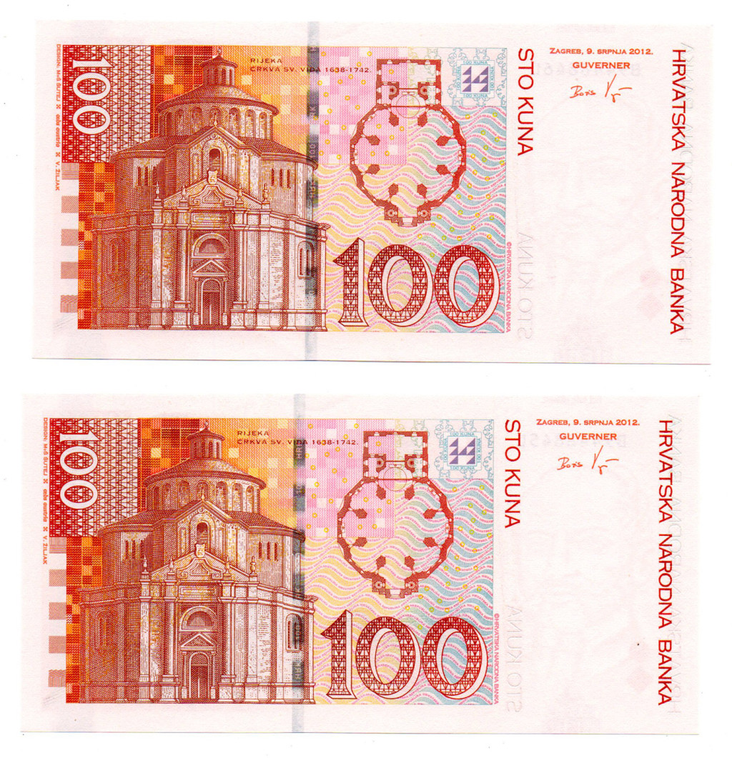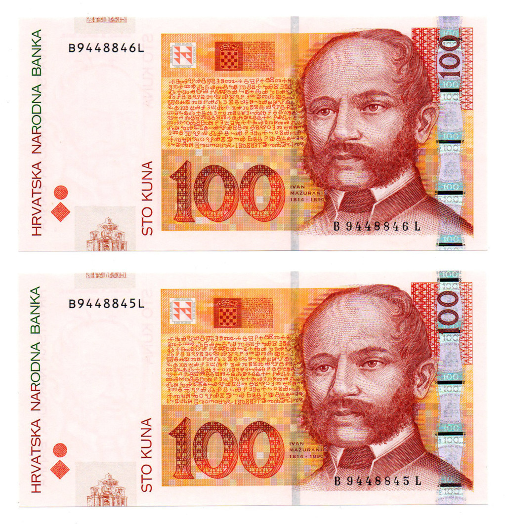 Horvátország 100 Kuna Bankjegy 2012 P41b sorszámkövető pár
