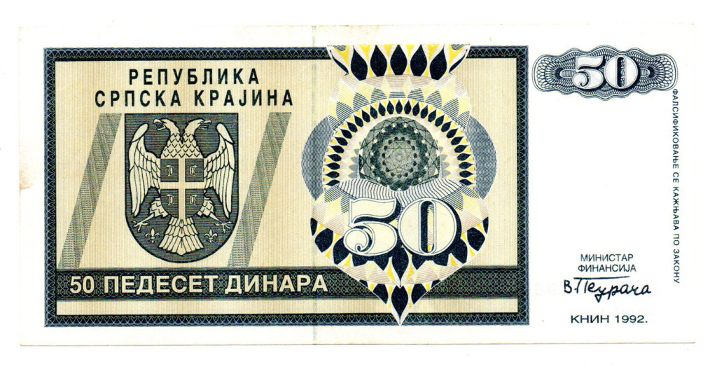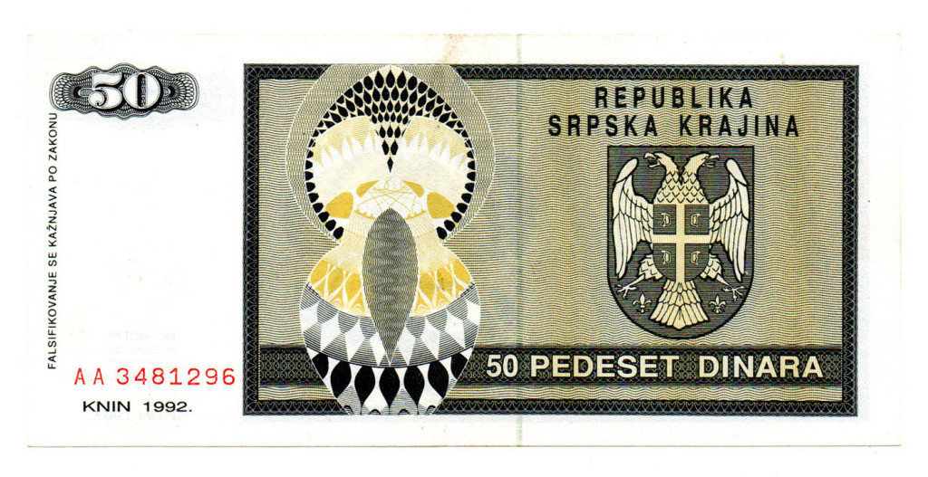 Horvátország 50 Dinár Bankjegy 1992 PSR2a KNIN