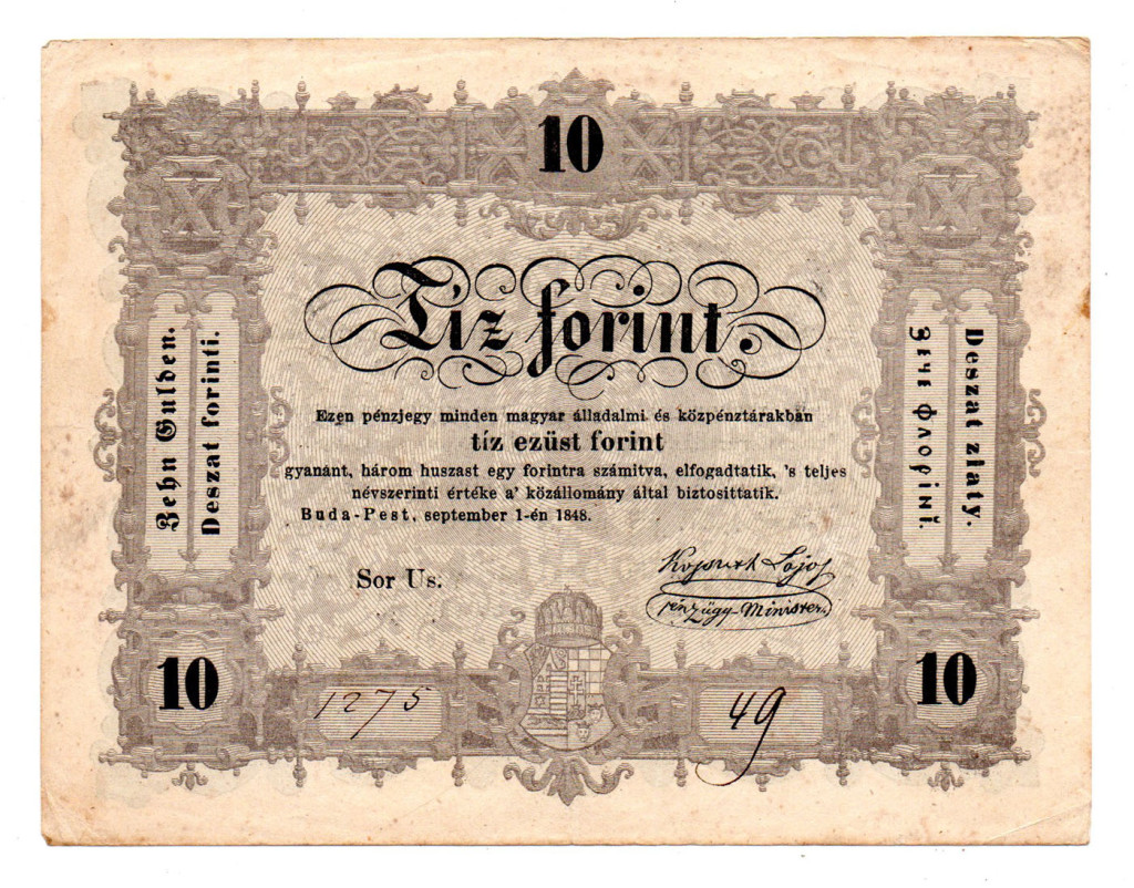 Kossuth 10 Forint Álladalmi Pénzjegy 1848 büntetettnek tévnyomat