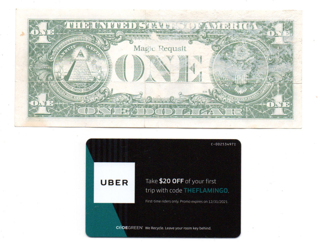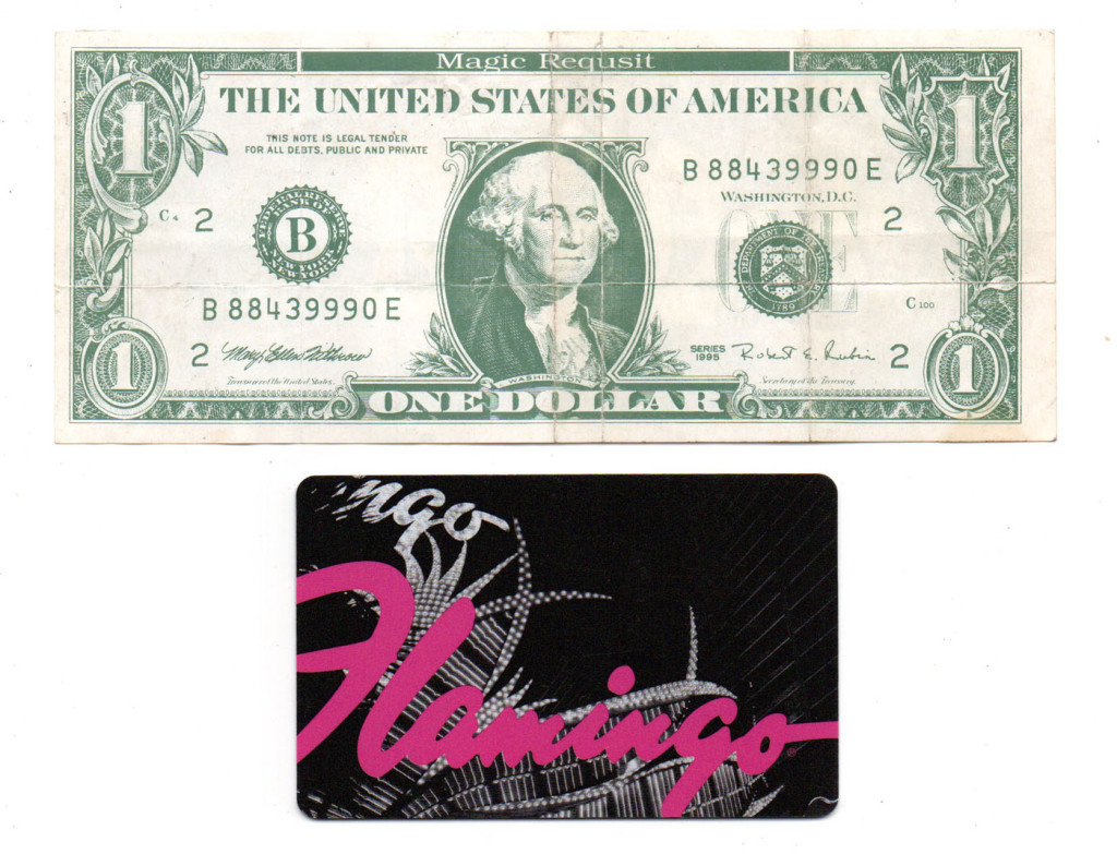 Las Vegas 1 Dollár játék bankjegy és Flamingó UBER kártya