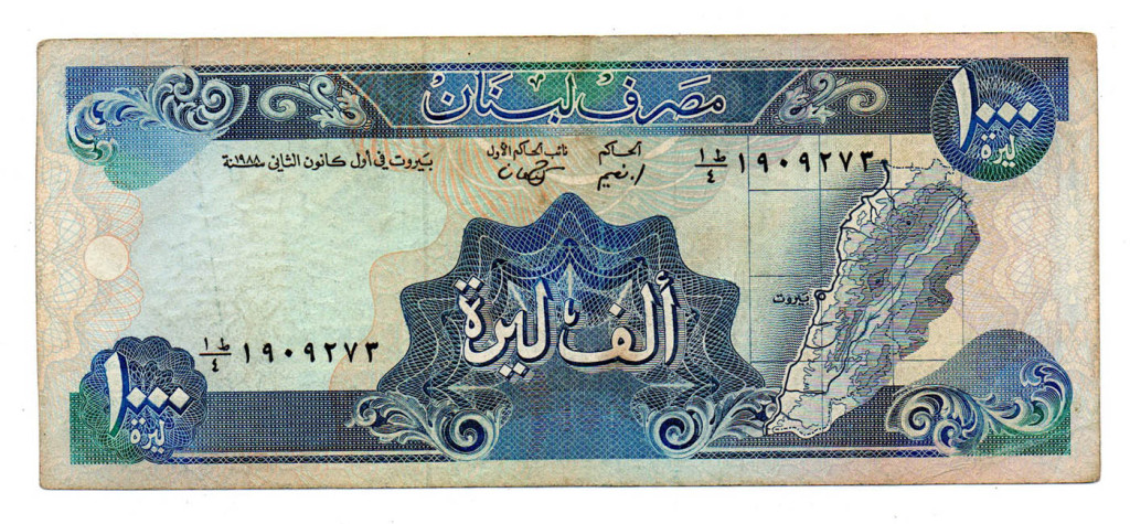 Libanon 1000 Font Bankjegy 1988 P69a