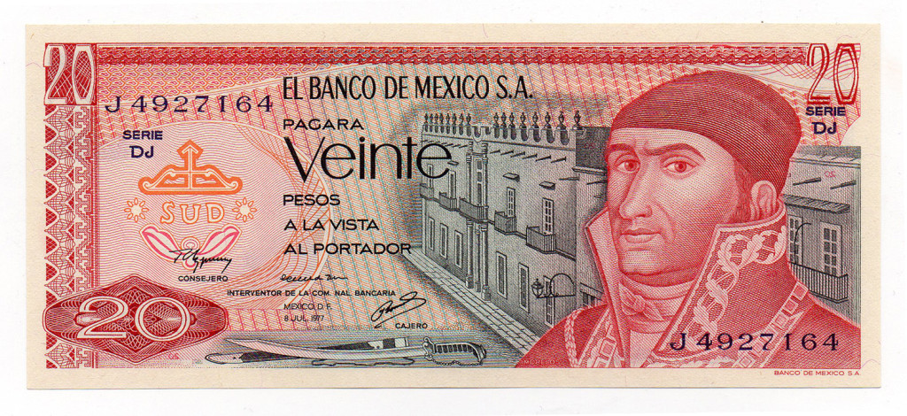 Mexikó 20 Peso Bankjegy 1977 P64d