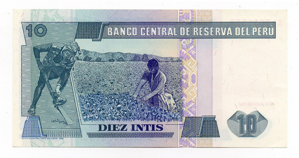 Peru 10 Intis Bankjegy 1987 P129a UNC
