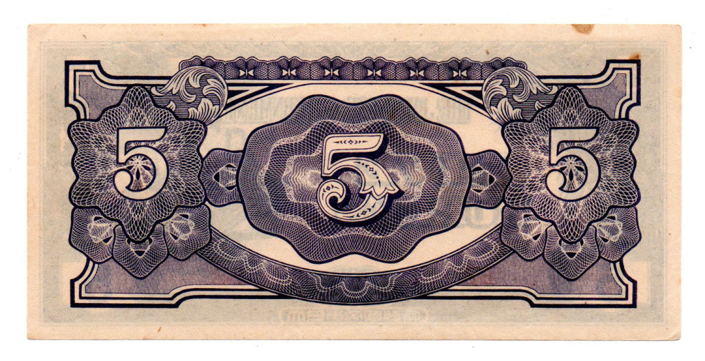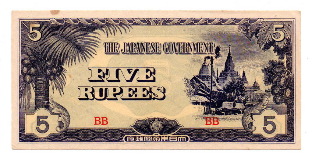 Burma Japán megszállása 5 Rúpia Bankjegy 1942 P15b aUNC