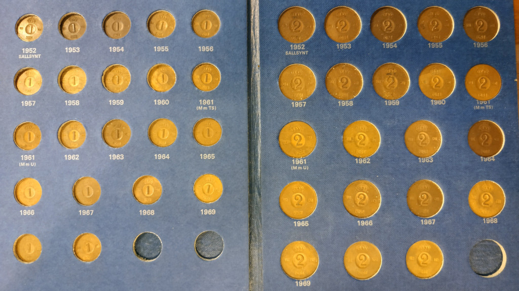 Svéd érme gyűjtői album 1 és 2 Öre 1952 - 1961 benne 44db érme