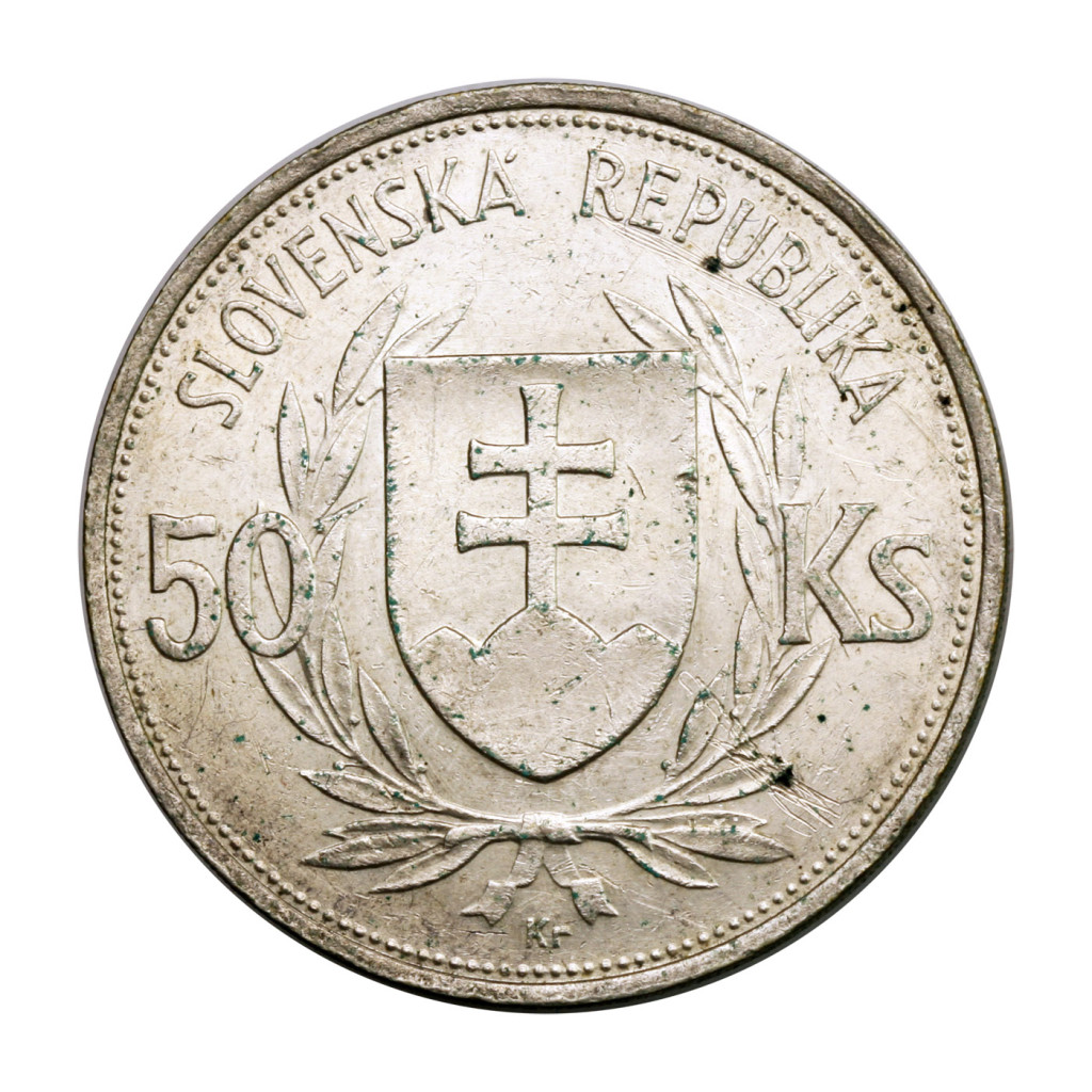 Szlovákia 50 Korona 1944 Jozef Tiso gVF 16,58g Ag700