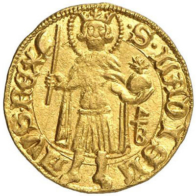 Hátlap: S•LADISL-AVS•REX szemben álló Szent László bárddal és országalmával, jobboldalt mesterjegy Francisco Bernardri